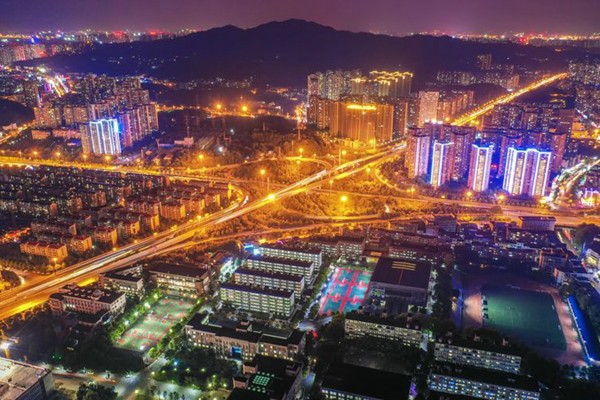 航拍校园夜景